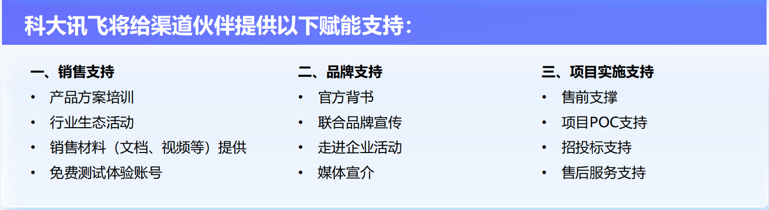 【合作优势】不需要提前打款、交押金,事前协议保障渠道伙伴利益,项目合作后客户回款即结款,高额返点,我司免费提供售前方案、产品培训、POC等,全力支持渠道伙伴。